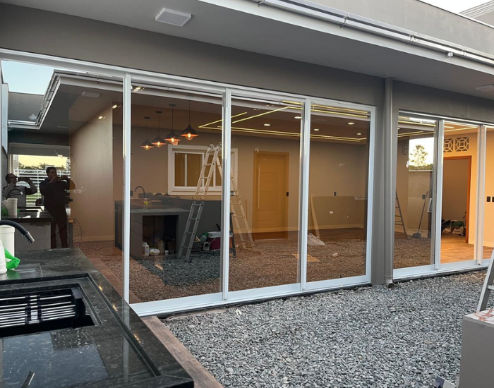 Instalação especializada de esquadrias de alumínio, realizada por equipe técnica qualificada, garantindo segurança e vedação.